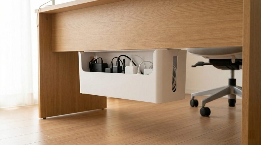 この手法は複数のタップや余った長いコードをまとめて管理できるため、配線が多い環境に最適です。