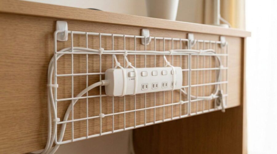 デスクの裏側や家具の隙間に広いスペースがあるなら、ワイヤーネットを活用する方法が効果的です。