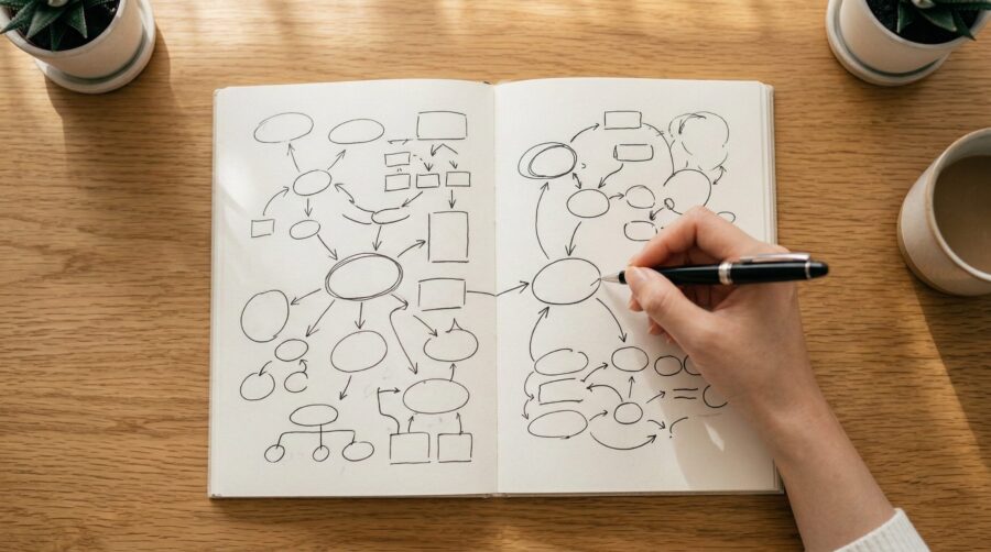 無地ノートの空白を恐れず、思考の遊び場として捉える姿勢が継続の鍵となります。