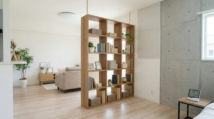 背の高いオープンシェルフを間仕切りとして活用する方法
