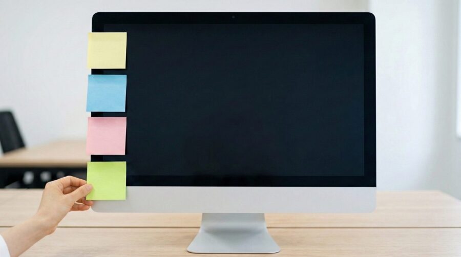 付箋をデスクやモニターの周辺に貼ることで、今取り組むべき作業が常に目に入る状態を作れます。