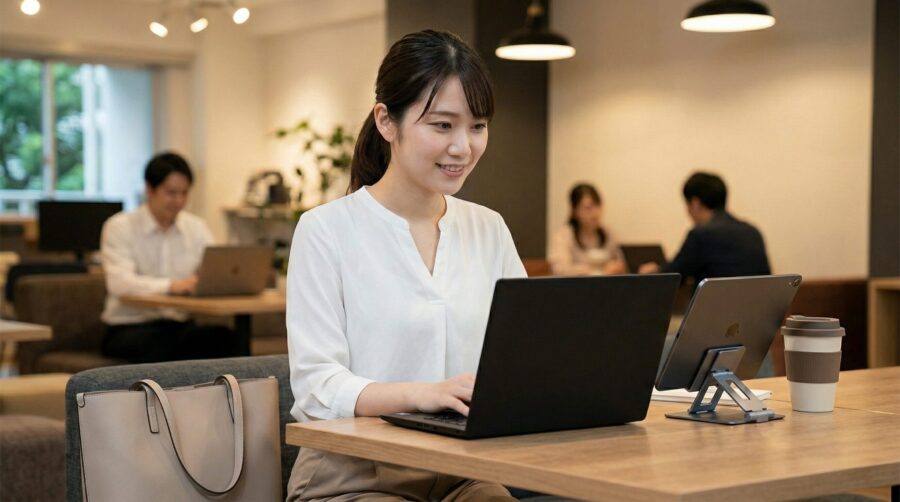 外出先のカフェやコワーキングスペースでも、手軽に二画面環境を再現できるのが大きな利点です。